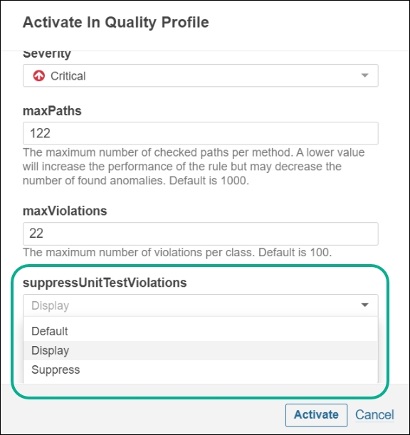 The drop-down list for the entry of Rule Parameters has been introduced to the improved Activate in Quality Profiles page. You could only feed regular text into fields prior to this release.
