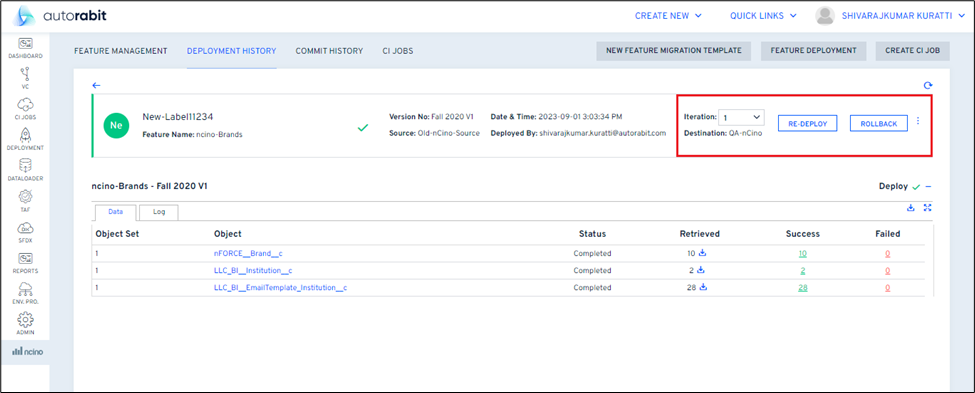 Once the deployment is finished, users can download the backup snapshot of the deployment marked for ‘Rollback.’