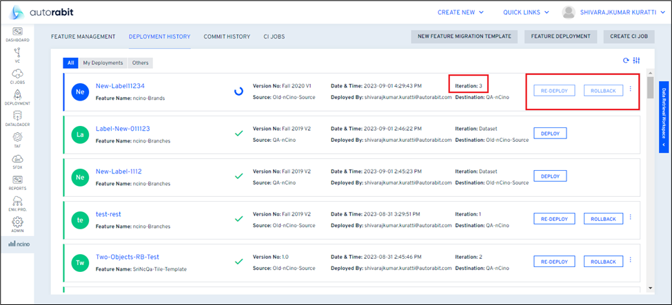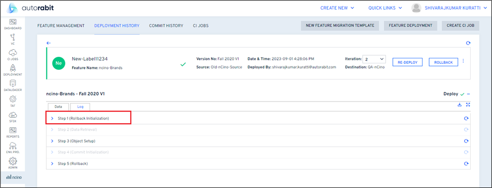 Once the 'Rollback' is completed, then the iteration number will be updated.