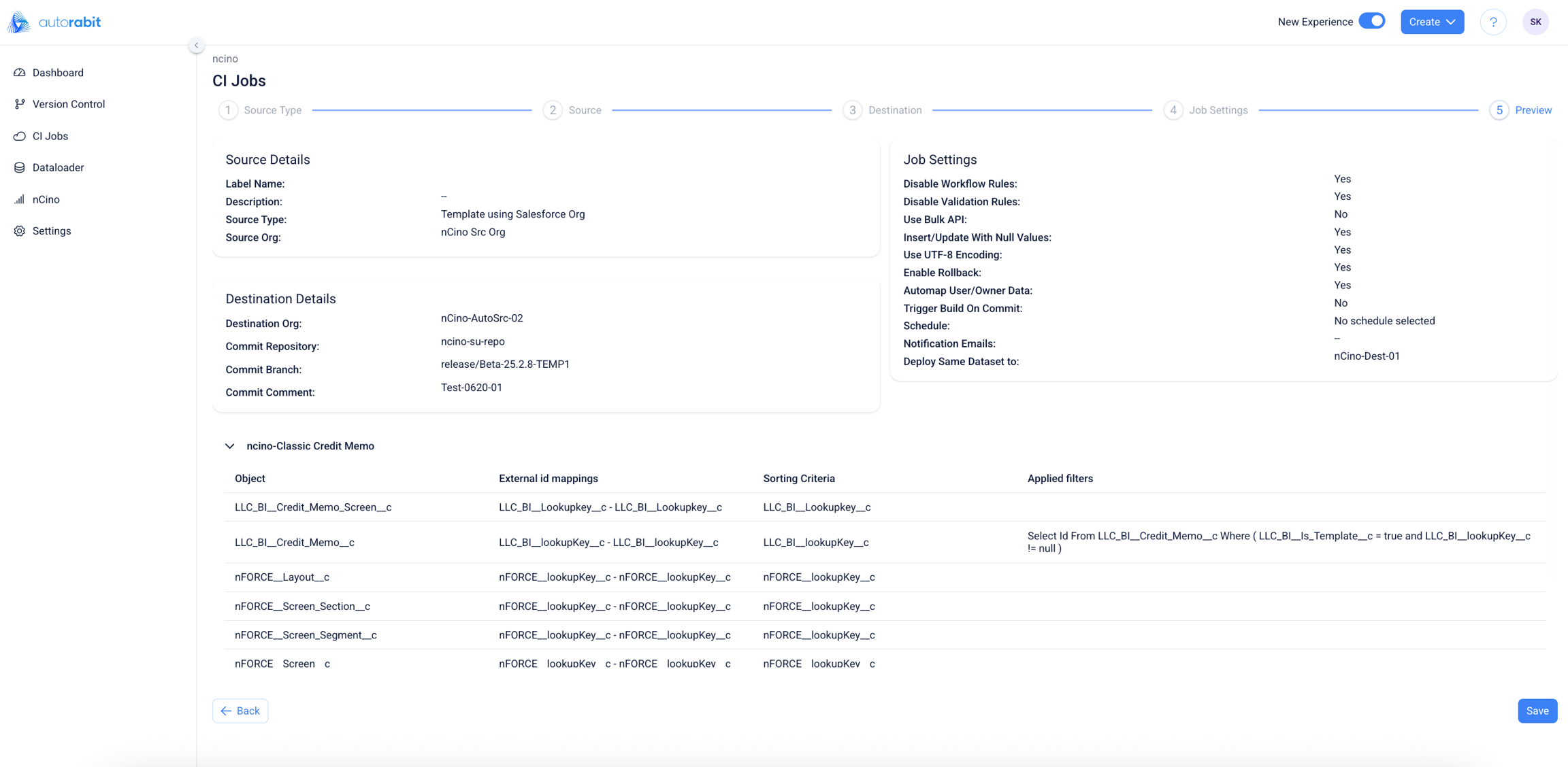Click Save to create a CI Job. On clicking "Save", the interface will navigate to the "CI Job List" page.