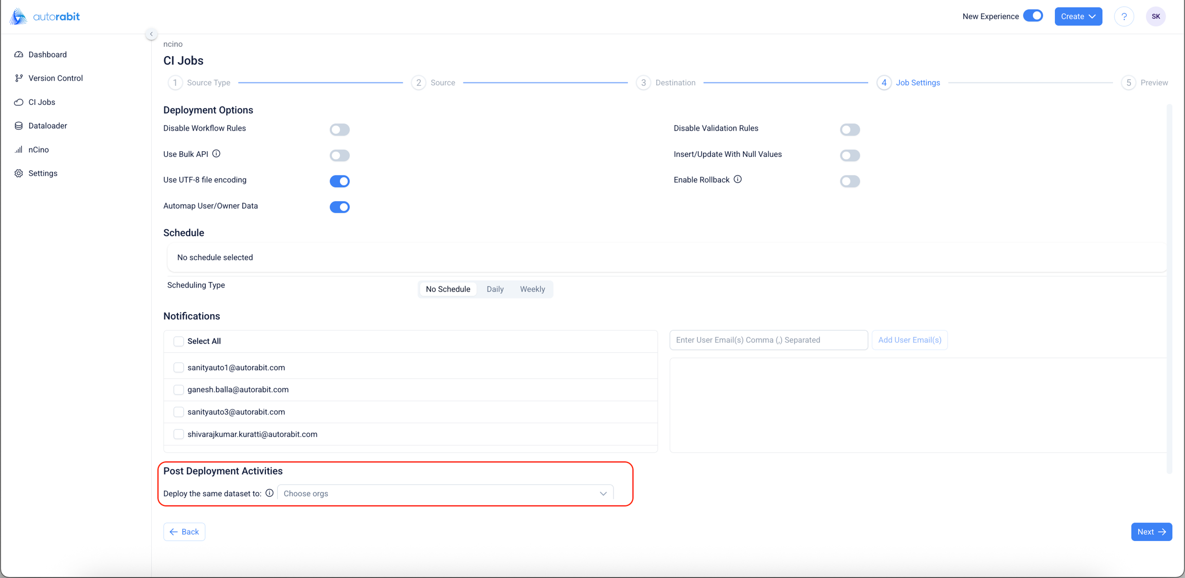 Using this feature, users can perform the deployments to the Orgs selected on the post-deployment activities.