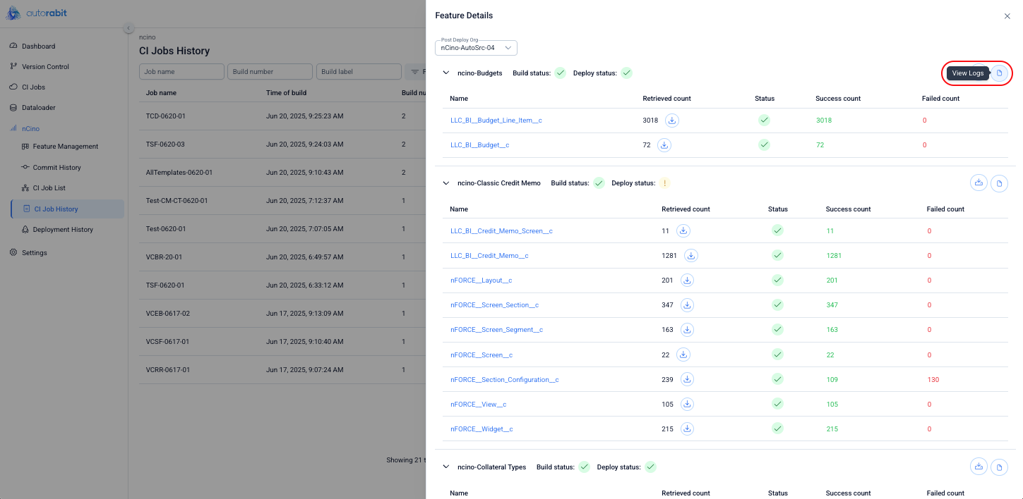Clicking on "View Logs" will redirect the user to the "Feature Logs" section.