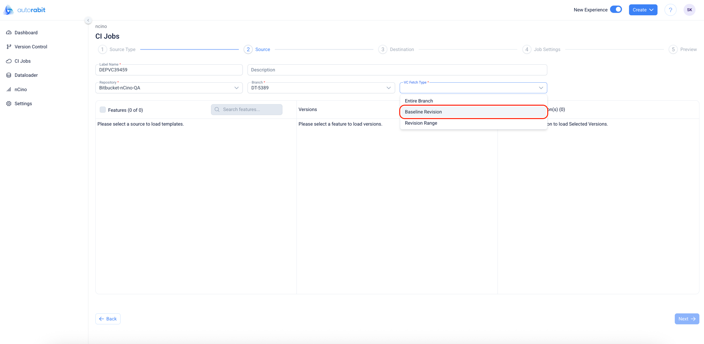 VC Fetch Type: Select the "Baseline Revision" from the available list.