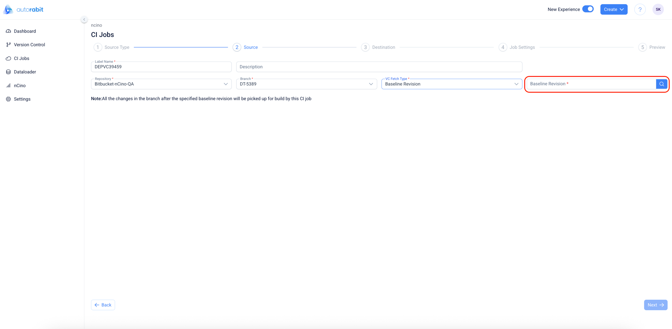 The Baseline Revision serves as a reference point in version-controlled deployments. When configuring a CI Job, selecting a baseline revision instructs the system to automatically include all templates committed after that specific revision for every subsequent deployment execution.