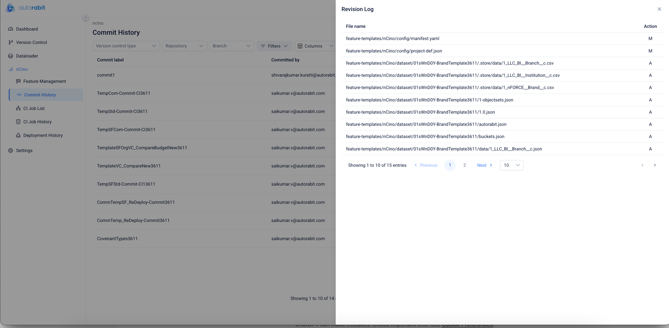 Committed By: Email address of the user who performed the commit.
