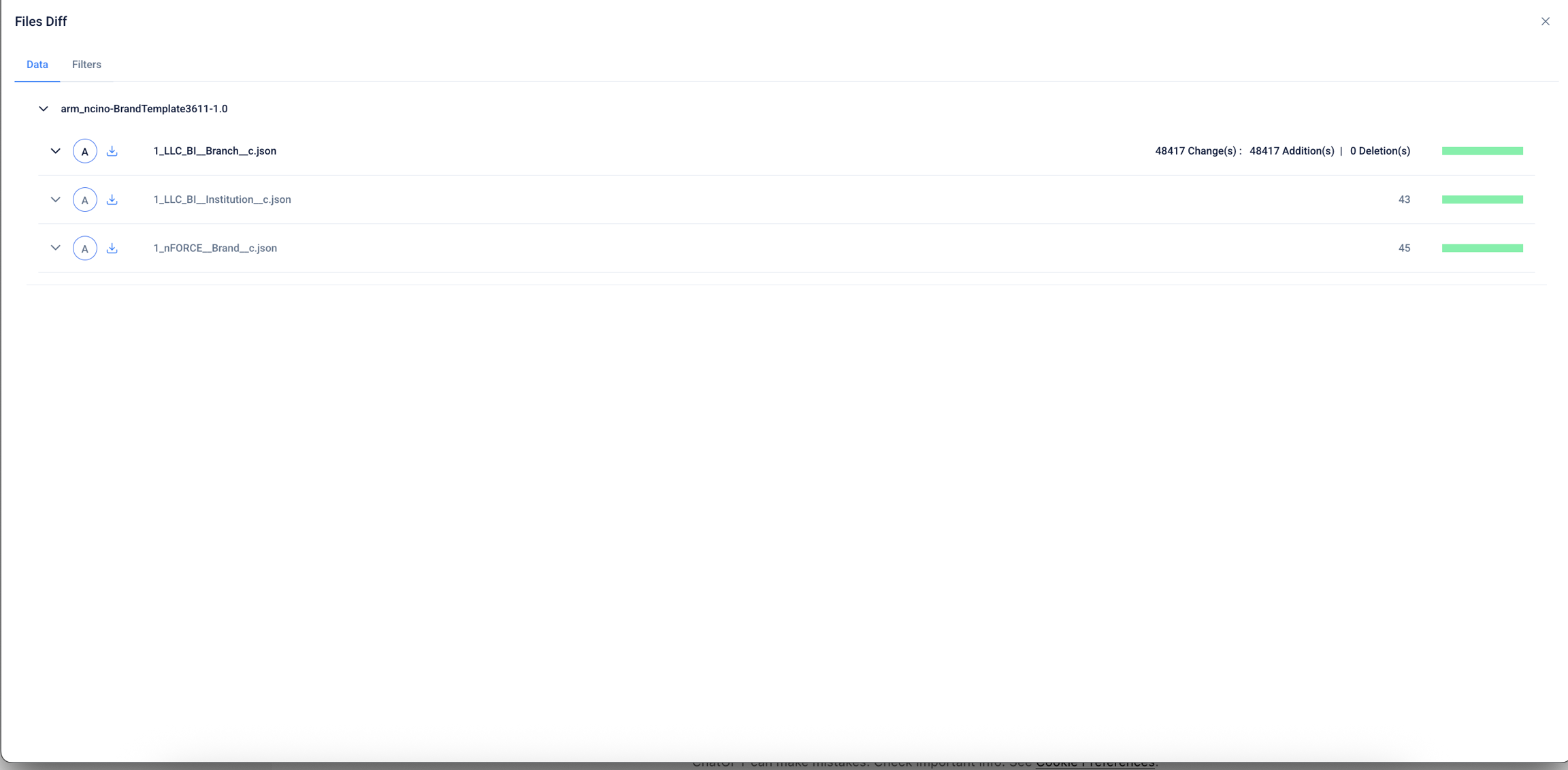 File Diff Modal: Data Tab