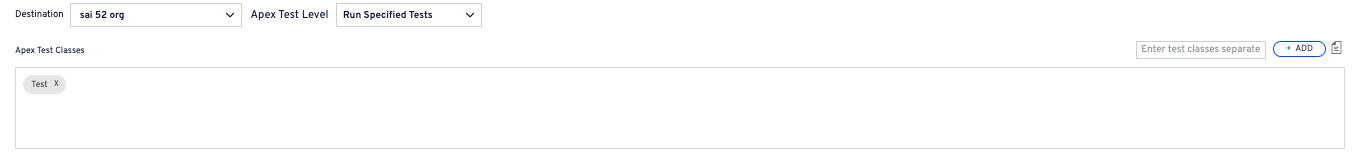 You can select separate Apex test classes for each Salesforce Org. This provides the flexibility to run different tests tailored to each environment's needs.
