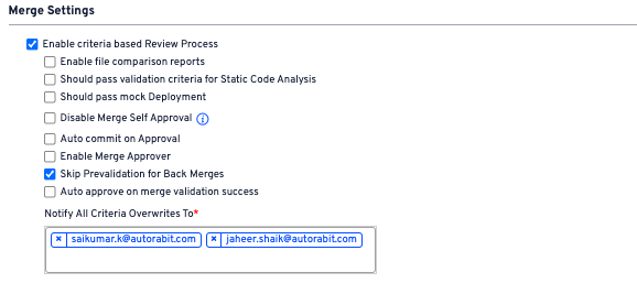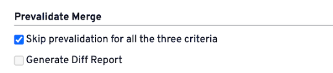 Users with the 'Merge Review Overridable' role have special permission to check or uncheck the pre-validate option. However, each time they try to commit to the branch, a notification alert mail gets triggered to the email ID as specified in My Account > Merge Settings.
