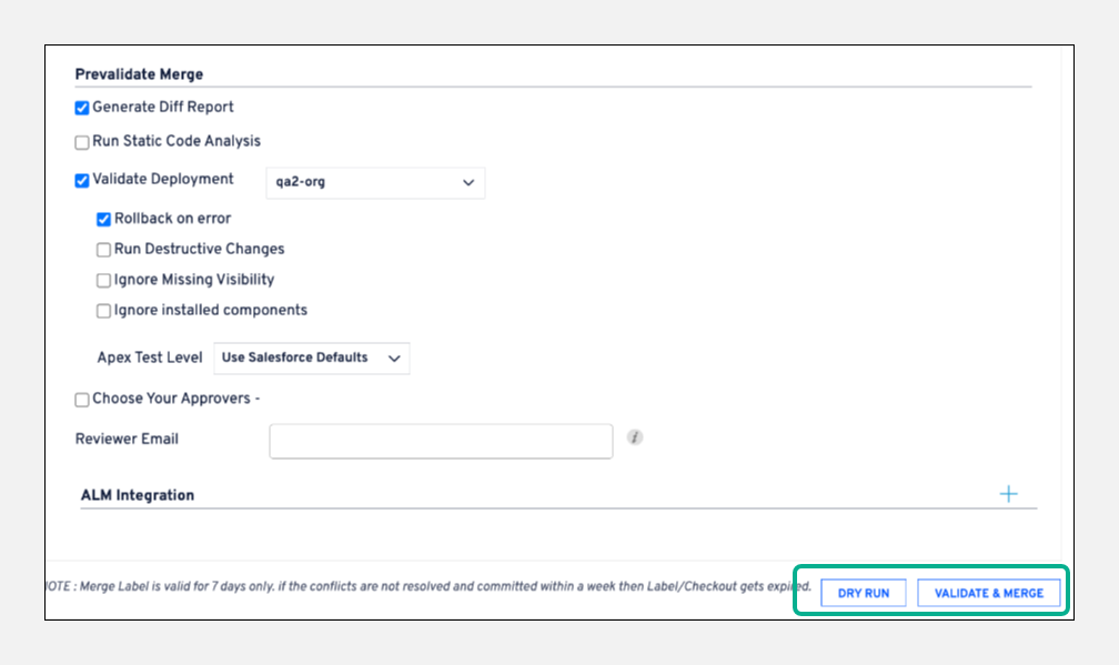 All Orgs Success: The merge will be successful only if all selected Salesforce Orgs pass the validation. This option ensures that changes are consistently valid across all environments.