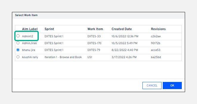 Merge TypeasALM Label.The Work Item will gather all of the user stories for which the ALM commits happened in the Source Branch of the chosen Version Control Repository. Click on the