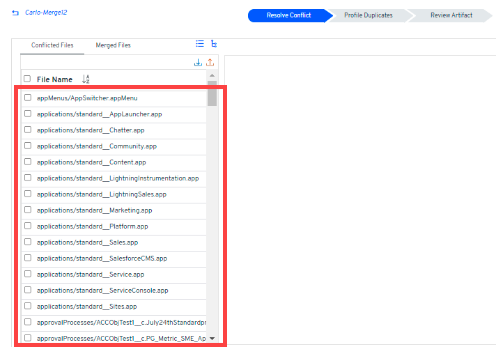 3. The list of **conflicted files** or **merged files** will display on the next screen.&#x20;
