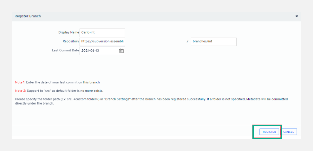 Repositoryfield is auto-filled with the URL entered when registering the repository.Select the