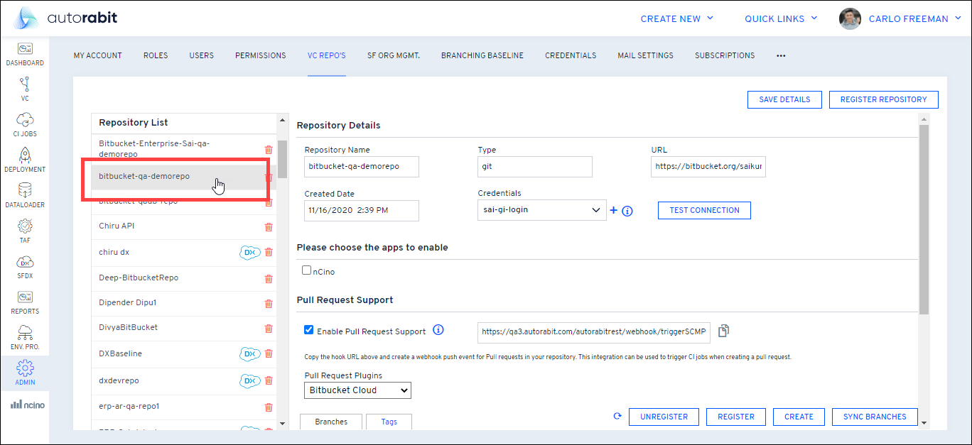 and go to the VC Repo's tab.Select your Version Control Repository under Repository List.