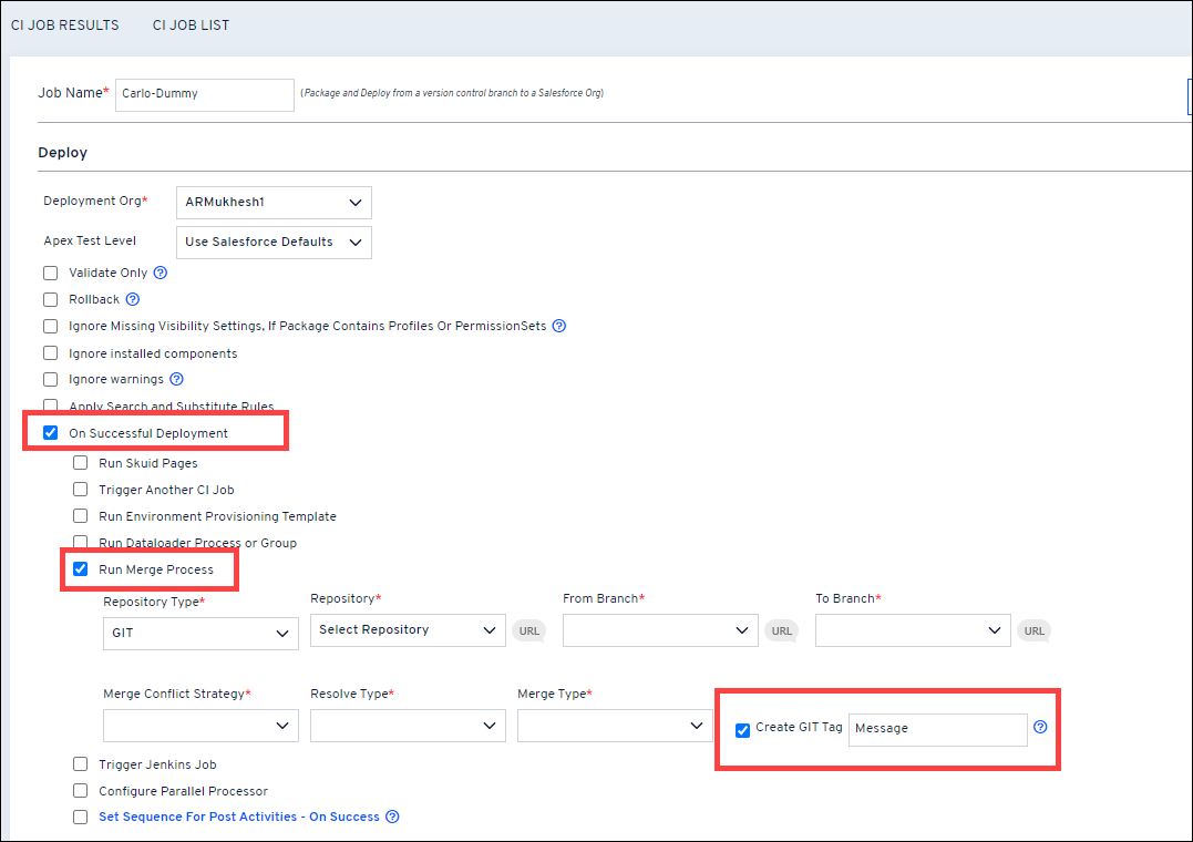 Fill in other details as per your wish and click Save. When the build is triggered successfully and the merge process is run, a tag will be created based on the Project_Buildnumber.