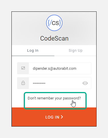 3. Enter the **`email address`** you used to create your CodeScan account.