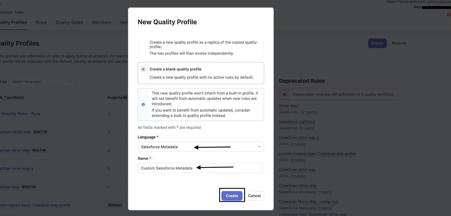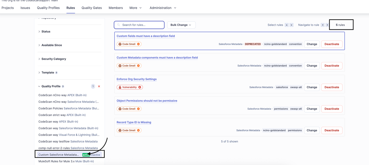 ### Create a Custom Salesforce Quality Profile <a href="#create-a-custom-salesforce-metadata-rule" id="create-a-custom-salesforce-metadata-rule"></a>