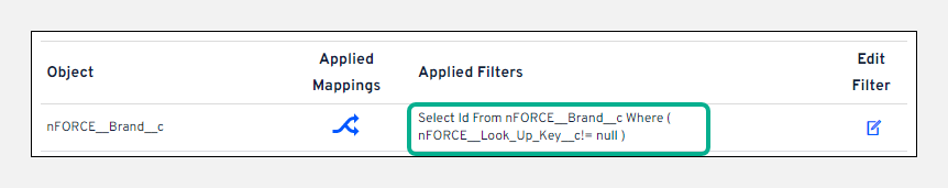 Applied Filters:If any filter is applied to the objects, such a filter will be displayed here. You can edit the applied filter (if required) using theEditicon. Editing of the filter is currently not allowed for deployment via the template.