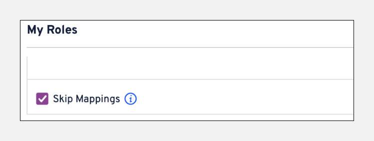 To avoid this, contact your admin to select the Skip Mappings checkbox under the My Roles section on the Profile page. More information on how to map a branch to a Salesforce org is available here.